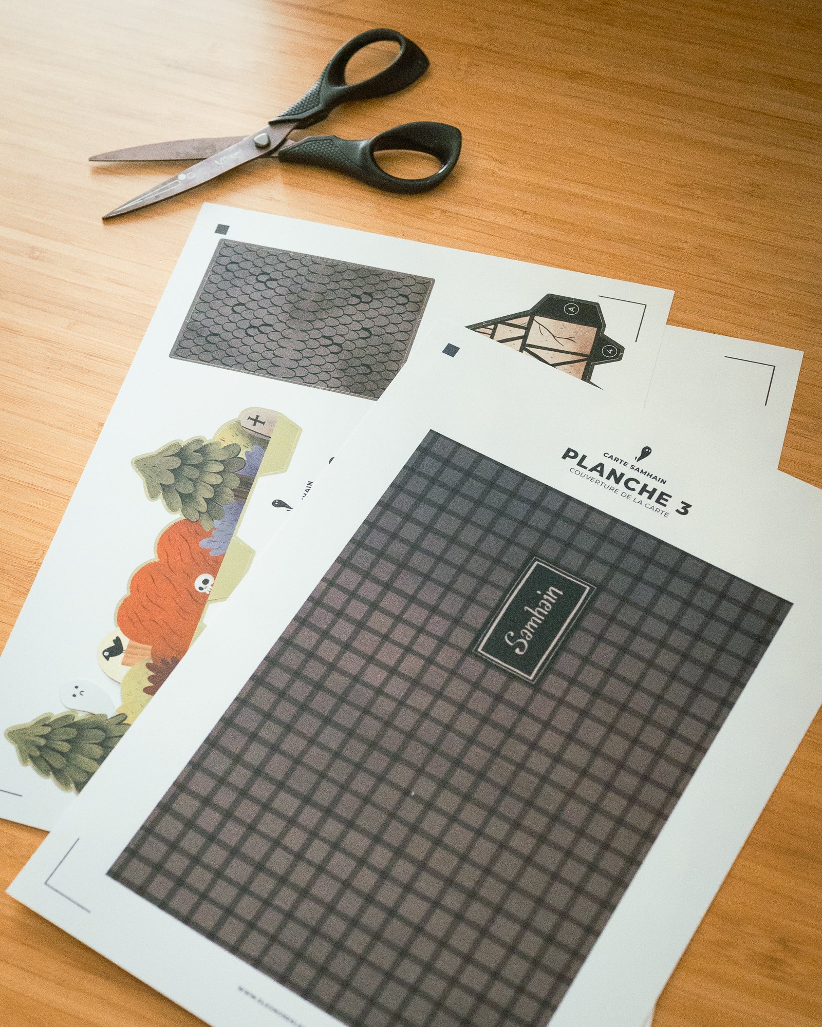 - les planches nécessaires à la réalisation de la carte avec pièces mobiles pré-découpées